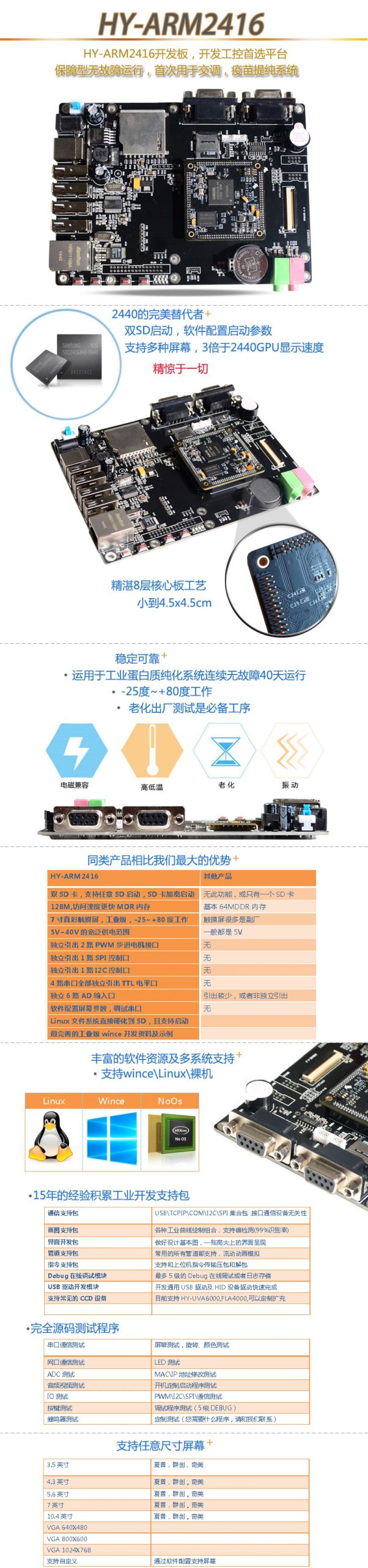 支持SD卡啟動, 支持linux, WINCE 雙系統(tǒng). 隨機贈送全部開發(fā)資料及源碼.上手及其容易, 將近8年的資料,讓您足不出戶, 學會,及熟練應用ARM板相關(guān)技術(shù)開發(fā).大家可能對2416有點陌生, 因為此前接觸的都是ARM2440A, 2416是2440A的升級產(chǎn)品.對2440系列作了很多改進.